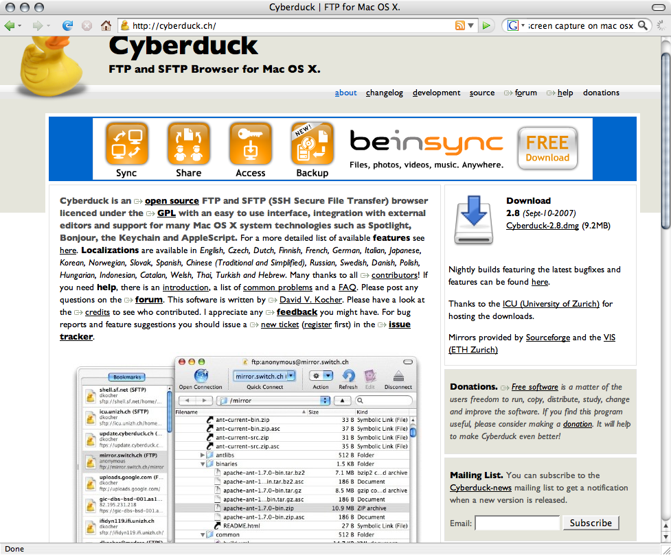 Go to the Cyberduck download website and click on the download button